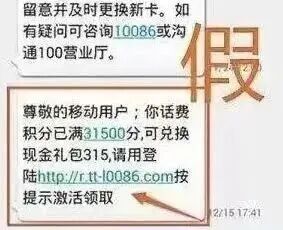 警惕积分兑换陷阱 跳转网页或被设置木马程序 近日,居民杨先生就收到了“积分清零”“积分兑换空气炸锅”的提醒短信。看到短信以为是运营商发来的,而且短信里的网址又与真实网址相似。杨先生并没有过多的怀疑就用手机打开了网址。 进入的也是一个标题为“掌上营业厅”的页面,要求填写姓名、身份证号、信用卡卡号、交易密码、预留手机和卡背后三位等信息。 信息填写完成后,又跳转到标题为“全国银联信用卡提额专用”的页面下载安全控件(实际上是木马程序)。 不久后,杨先生就收到多笔消费短信,提示自己的信用卡被消费了7739元,这才发现是陷阱。 骗术拆解 01伪装运营商链接 “10086”和“l0086”傻傻分不清 骗子利用英文字母“l”和数字“1”的低辨识度,仿冒运营商发来短信,用“l0086”冒充“10086”。收到短信后,大部分人都会误以为这是10086发送的,仔细观察就会发现它是小写的“l”而不是“1”。 这些电话号码也要警惕 “400”开头的号码 400开头的号码,是企业专用的电话,一般国内企业用来做客服电话、售后服务电话来使用。以“400”开头的电话只是用来接听的,正规企业一般不会用这个号码拨打电话,如果你接到这类型的电话,建议不要接听。 “00”或“+”开头的号码 根据工信部有关规定,境外电话进入我国通信网络时,必须在主叫号码前添加国际冠字“00”(部分手机将“00”翻译为“+”),且严禁在传送过程中删除该冠字。如果没有海外亲友,这类来电基本可以判定是海外诈骗电话。 “95”开头的号码 95开头的号码,号码长度一般为5位或6位,是银行、证券、保险、航空、物流(快递)、石油、铁路、电力行业里具有影响力的大型企业使用的客户服务号码,可以放心接听。 如果接到的95开头的电话超过6位,这些电话尽量不要接。诈骗分子通常用买来或租借的“95”号段号码与语音机器人捆绑,一天内拨出成千上万个电话,漫天撒网后筛选出重点对象进行引流,再通过人工客服精准诈骗。 “1069”开头的号码 “1068”“1069”代码开头的短信是为跨省或者全国范围内非经营性短信类服务第三方平台,为其他企业提供短信平台服务,不对最终用户收费。但一些拥有资质的企业,违规将号码层层出售、转包,最终被诈骗分子利用进行诈骗。收到此类号码开头的短信,如果内容中带有链接的一定谨慎点击,更不要轻易回复短信内容。 02利用钓鱼网站获取银行卡信息 群众收到短信后,会根据短信内容登录相关网址,网页标注的是购物积分免费领取商品。 这些短信链接实际可能是钓鱼网站,在网站上输入银行卡账户、密码、手机号等信息,骗子在后台看见这些信息后,立即在真正的银行网站上操作,盗取受害人银行卡内的钱款。 03冒充工作人员骗取验证信息 骗子还会冒充工作人员,拨打电话宣传积分兑换活动礼品,索要验证码、密码;或是谎称有中奖、积分回馈活动,索要各类验证信息,骗取钱财。 文章来源:广东普法综合整理,主要内容源自央视新闻、公安部网安局