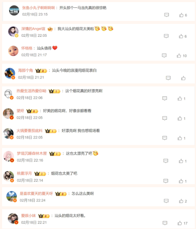 大家对这场烟花秀赞不绝口