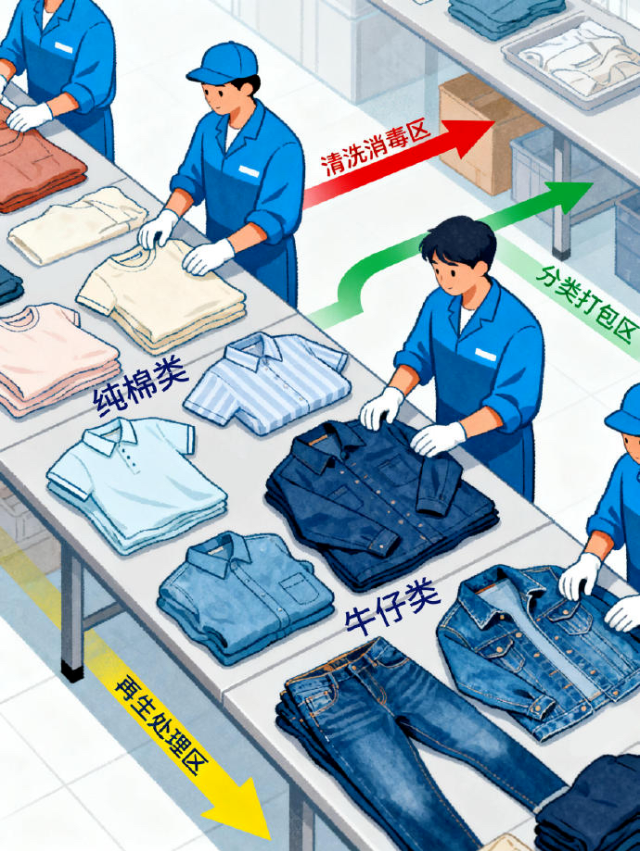 于是,我们将这些衣物投放到专门的废旧衣物回收箱或设施中,经过一系列的回收处理,如分类、清洗、消毒和破碎,这些衣物便能转化为新的纤维或制品,实现资源的循环利用。
