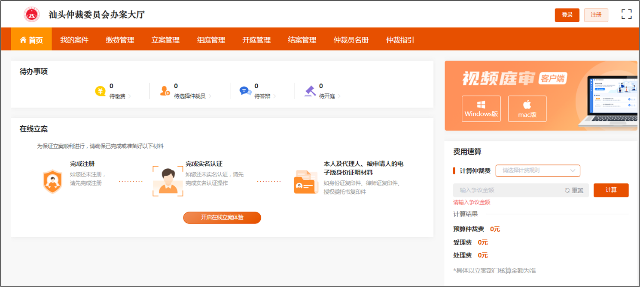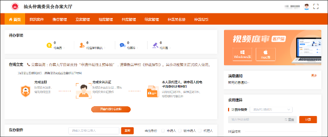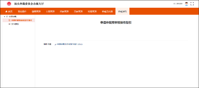 汕头仲裁委员会已经开通网上办案大厅。目前,您可以通过互联网就案件申请仲裁预审核,操作指引如下: