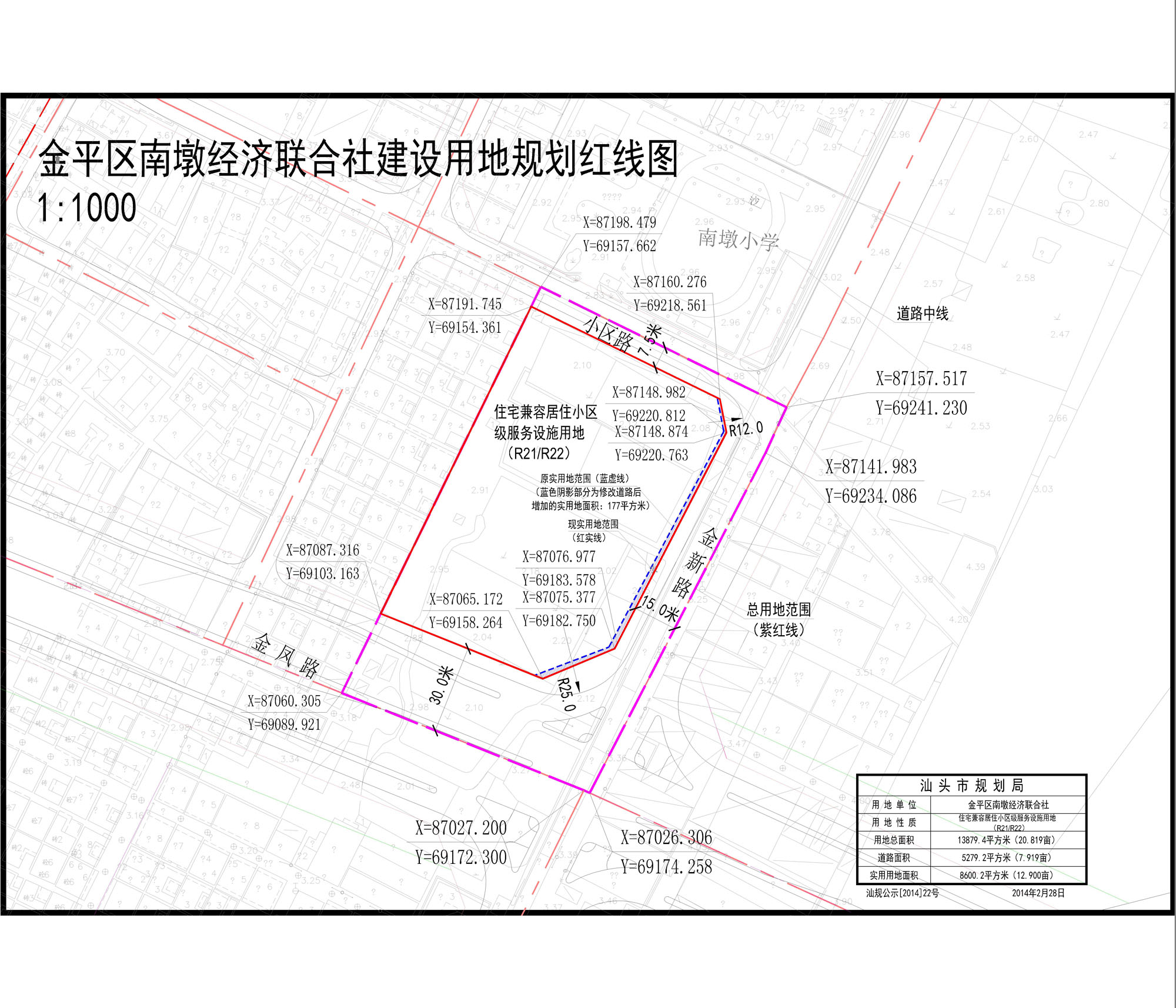 根据《汕头市东厦路100号片区三旧改造控制性详细规划》成果,结合金新北路与金凤路交界点的确定,金新北路在金凤路北段局部东移,避开7座已建宅基地,增加村民退迁用地面积177平方米。
