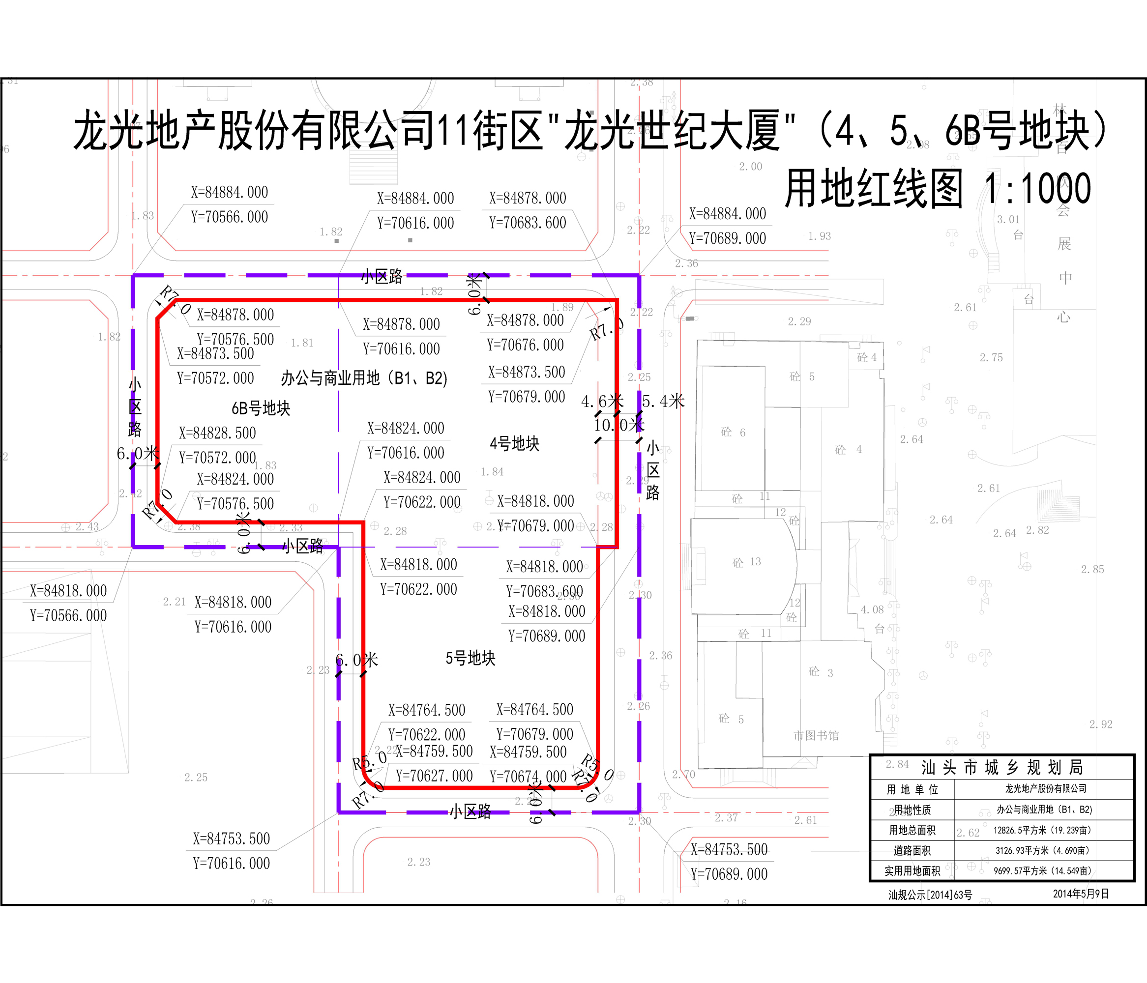 附图:龙光地产股份有限公司11街区“龙光世纪大厦”(4、5、6B号地块)用地红线图