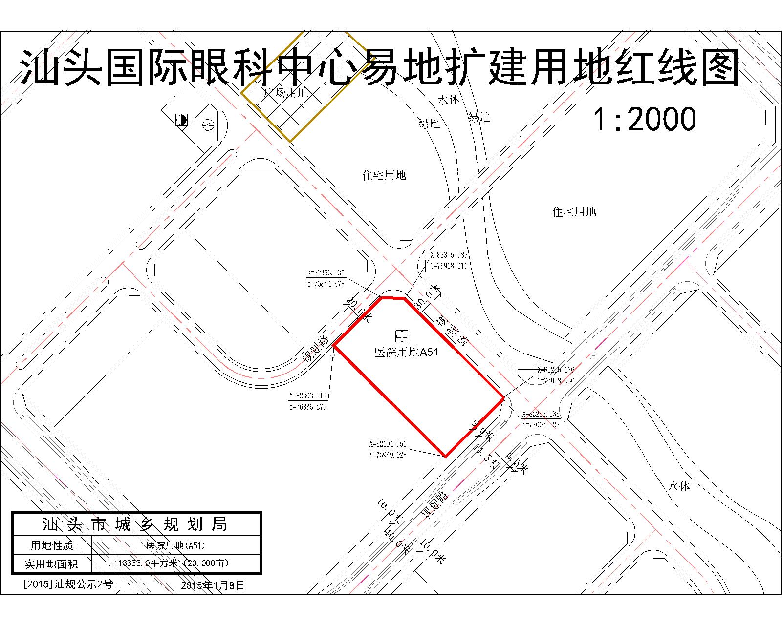 根据《汕头经济特区城乡规划条例》和《汕头经济特区城市建设用地使用性质和容积率规划管理办法》(市政府令第147号)有关规定,我局对汕头国际眼科中心易地扩建用地规划条件事项公示如下: