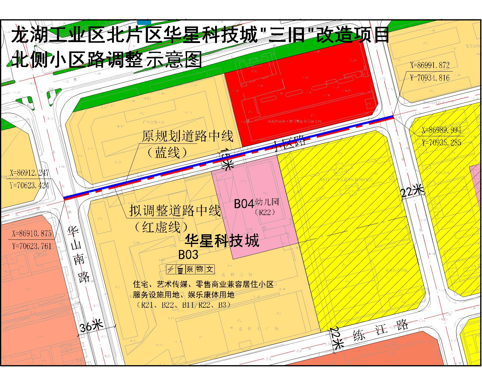 附件:龙湖工业区北片区华星科技城“三旧”改造项目北侧小区路调整示意图