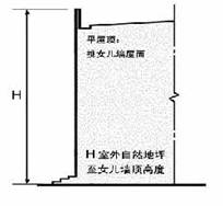 (1)平屋面建筑:挑檐屋面自室外地面算至檐口顶,加上檐口挑出宽度(附图1);有女儿墙的屋面,自室外地面算至女儿墙顶(附图2)。