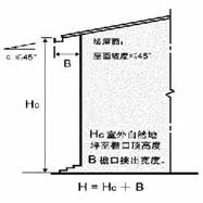 (2)坡屋面建筑:屋面坡度小于45度(含45度)的,自室外地面算至檐口顶加上檐口挑出宽度(附图3);坡度大于45度的,自室外地面算至屋脊顶(附图4)。