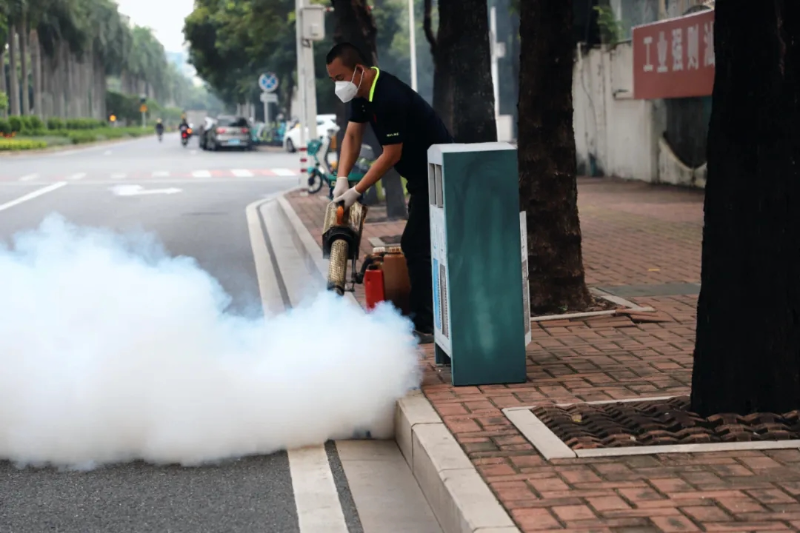 参加活动人员以高新区管委会大楼为中心,周边干道厂区为主线,辐射各区间路段,出动多辆环卫车辆,分组包片在全区范围内开展环境卫生大扫除,同时组织专业消杀队伍对全区道路、绿化带、机关办公点以及建筑工地、闲置地等易滋生蚊虫场所进行热烟雾和超低容量喷雾作业,切实有效降低登革热、基孔肯雅热等疾病传播风险,从源头降低蚊媒密度。