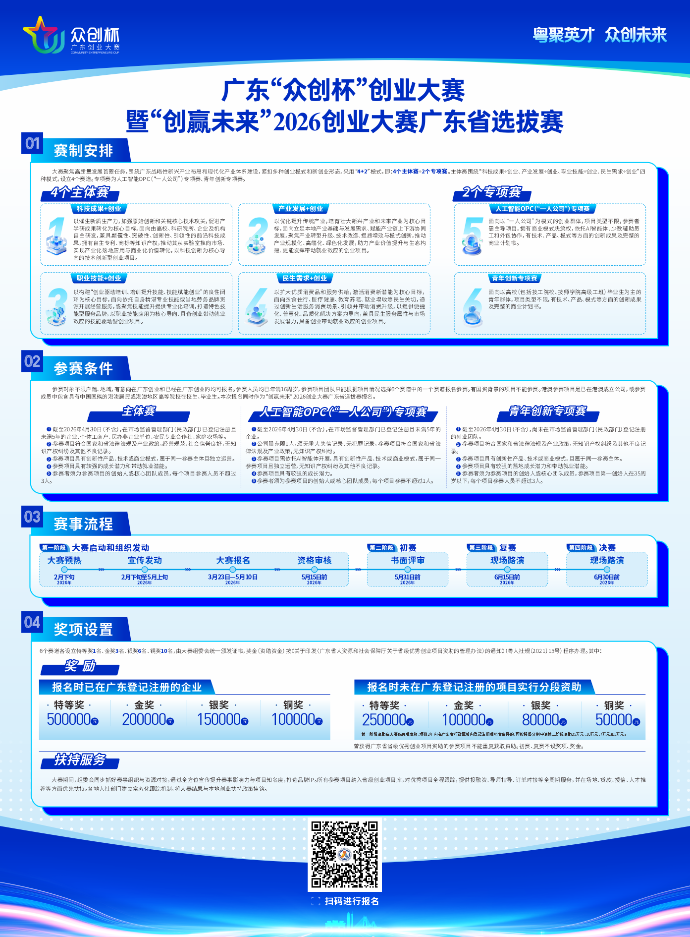 为深入贯彻党的二十大和二十届历次全会精神,落实省委、省政府关于促进高质量充分就业和实施“百万英才汇南粤”行动的部署要求,结合《人力资源社会保障部关于举办“创赢未来”2026创业大赛的通知》(人社部函〔2026〕5号)有关安排,加大创业支持力度,引导发展“四创”模式,激发全社会内生动力和创新活力,省人力资源社会保障厅联合肇庆市人民政府共同举办广东“众创杯”创业大赛暨“创赢未来”2026创业大赛广东省选拔赛。