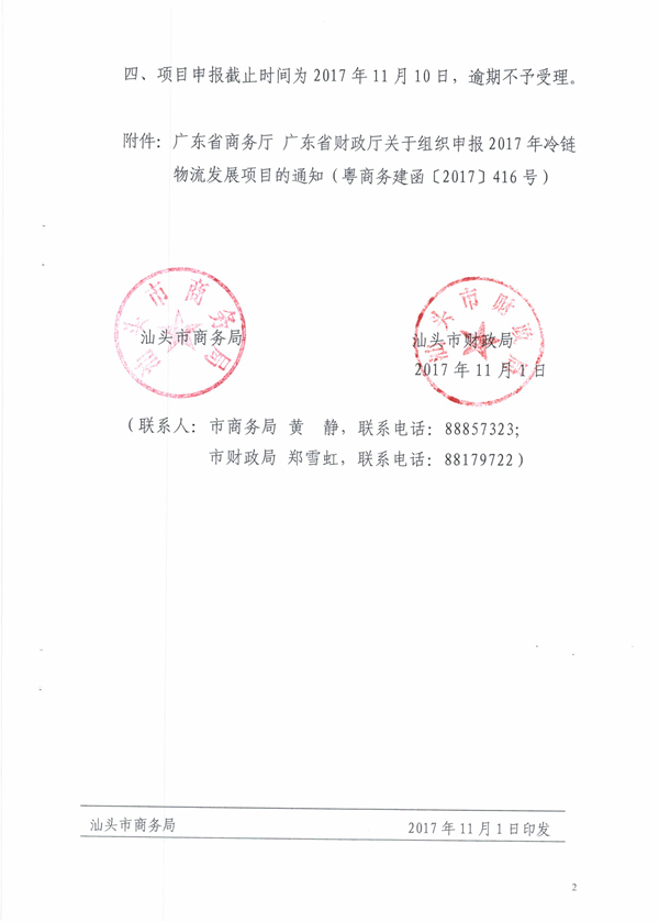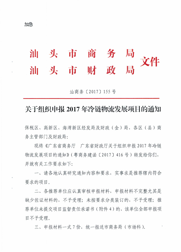 关于组织申报2017年冷链物流发展项目的通知