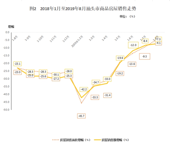 2019年1-8月,汕头房地产开发投资221.10亿元,同比下降9.5%。其中,住宅投资136.59亿元,同比下降10.9%。住宅投资占房地产开发投资的比重为61.8%。