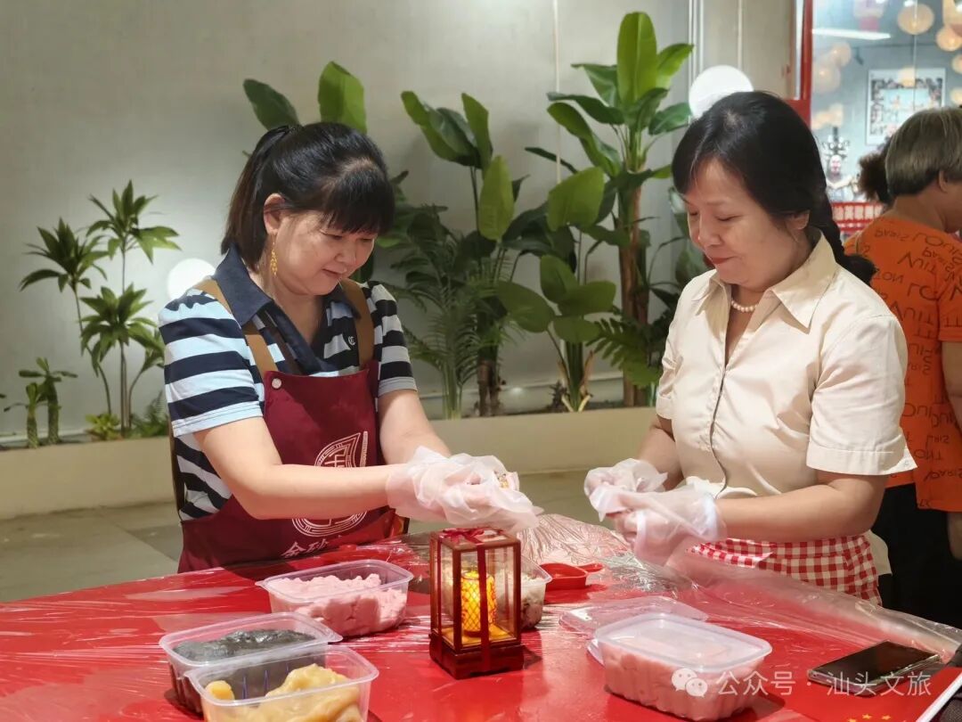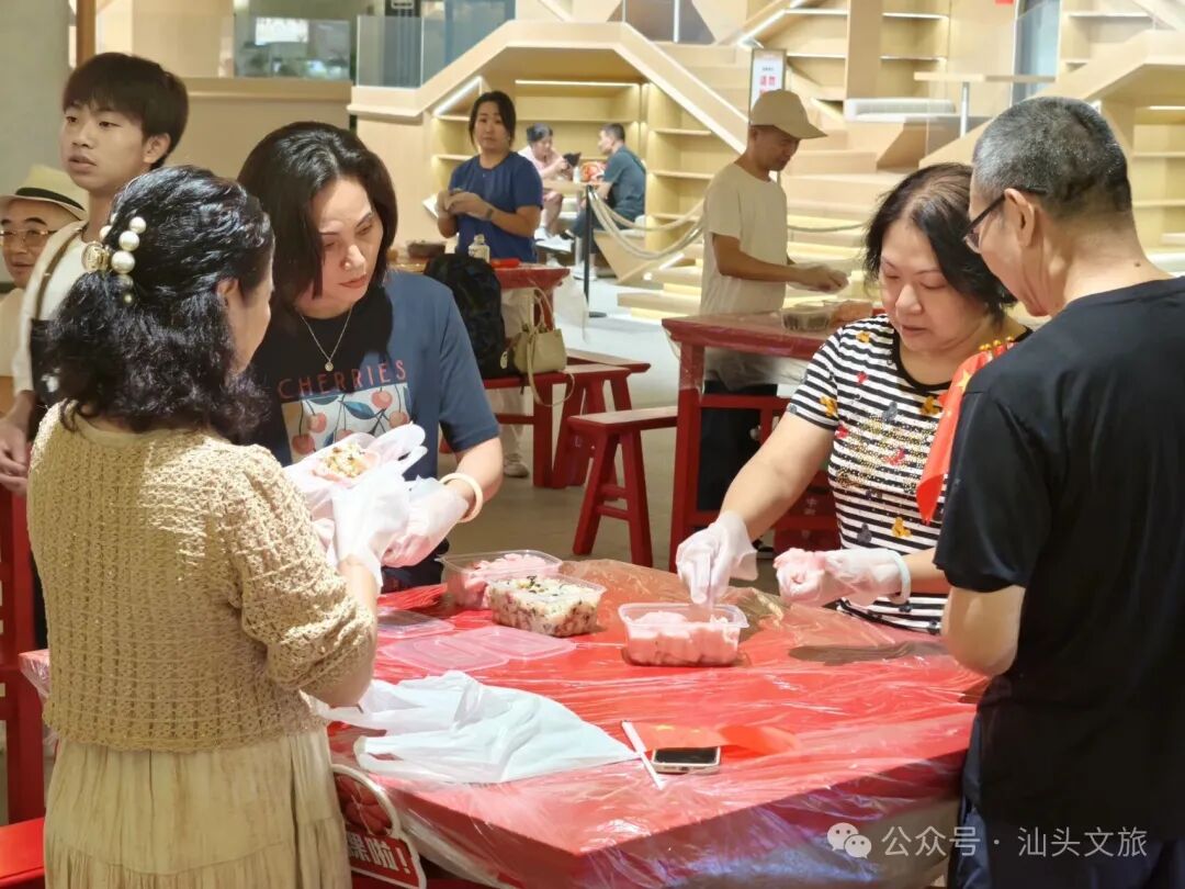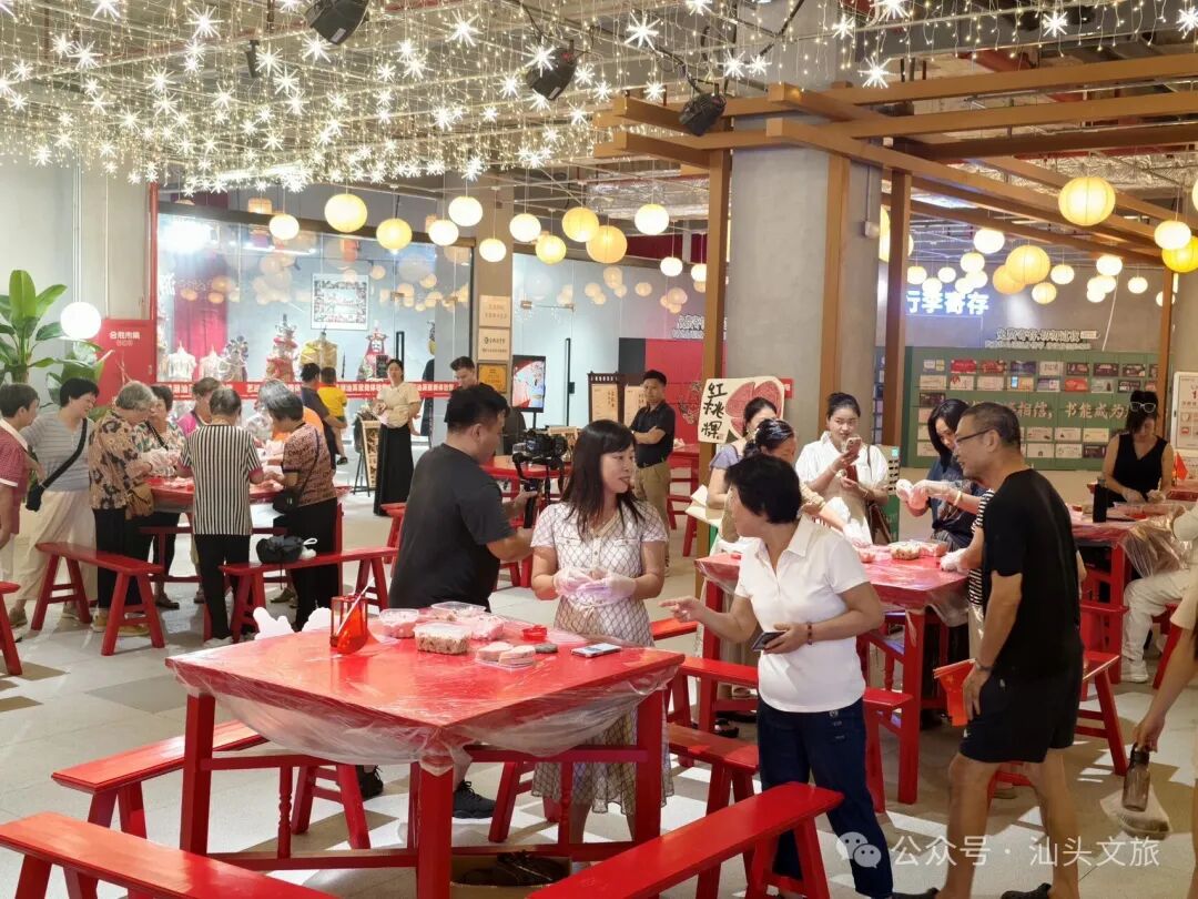 启动仪式在富有潮汕特色的鱼灯舞表演中拉开帷幕,灵动的舞姿与精巧的鱼灯相映成趣,迅速点燃现场气氛。随后,汕头市文化广电旅游体育局详细介绍本次文旅假期的整体安排,向广大游客发出诚挚的“汕头邀请”。合胜市集、华夏民俗文化周暨潮汕民俗文化博览会、汕头中海黄金海岸文旅小镇、潮阳区文广旅体局推介活动内容并现场发放文旅福利,引来观众热烈响应。 启动仪式后,合胜市集各类体验活动精彩继续。“粿然欢喜”做粿活动吸引大量市民游客参与,十多张八仙桌旁围满亲子家庭及年轻体验者,大家在非遗手艺人的指导下动手制作红桃粿、鼠粬粿等传统潮汕小食,感受舌尖上的非遗魅力。 市集区域内,十余家文旅企业设置展位,发放近八千份优惠券、礼品等文旅福利,涵盖景区门票、酒店住宿、文创产品等多个领域;美食区汇聚超130个品牌美食摊位,从牛肉丸、蚝烙到卤鹅、甜汤,一站式满足游客味蕾。这个假期,英歌舞铿锵有力、水袖舞柔美翩跹,潮文化情景剧、古筝独奏、NPC互动巡游等节目轮番上演,打造出古今交融、动静皆宜的文旅派对。