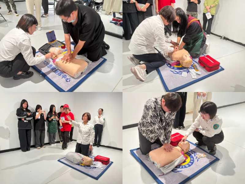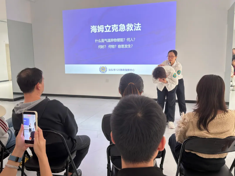 活动邀请汕头市120急救指挥中心副主任许朝霞担任主讲,采取“精讲+示范+全员实操”的沉浸式教学方式,系统讲解并演示了心肺复苏(CPR)、自动体外除颤仪(AED)使用、成人与婴幼儿气道异物梗阻急救法(海姆立克法)等核心急救技能。