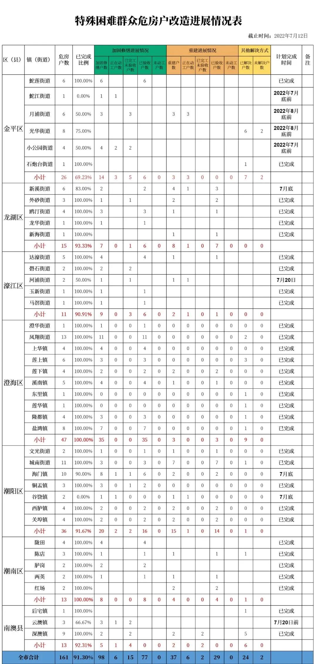为切实解决特殊困难群众住房问题,保障特殊困难群众住房安全,接受社会监督,现对今年列入特殊困难群众住房问题解决范畴的完成情况予以公示(见附件1、2)。